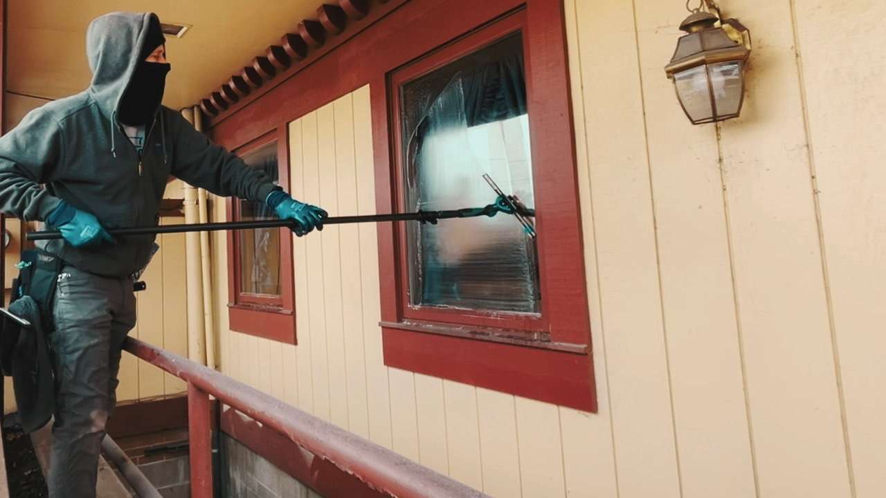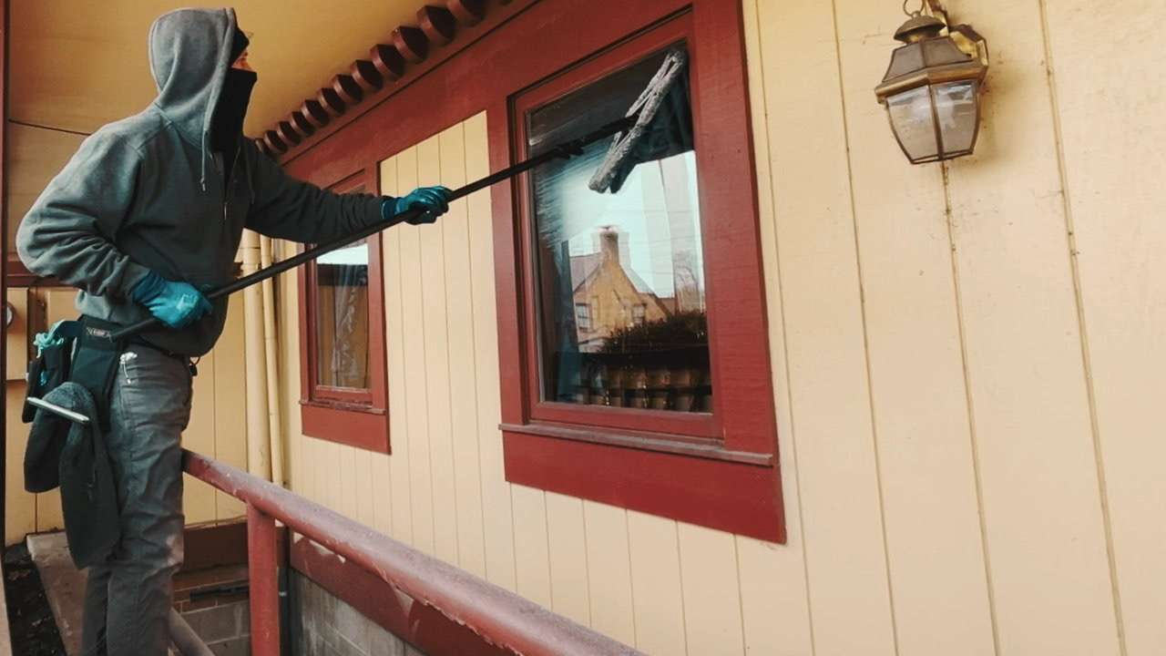 Window cleaning in the cold is bad enough…but at Tee Jayes in Zanesville we have to work over top of a stairwell.
